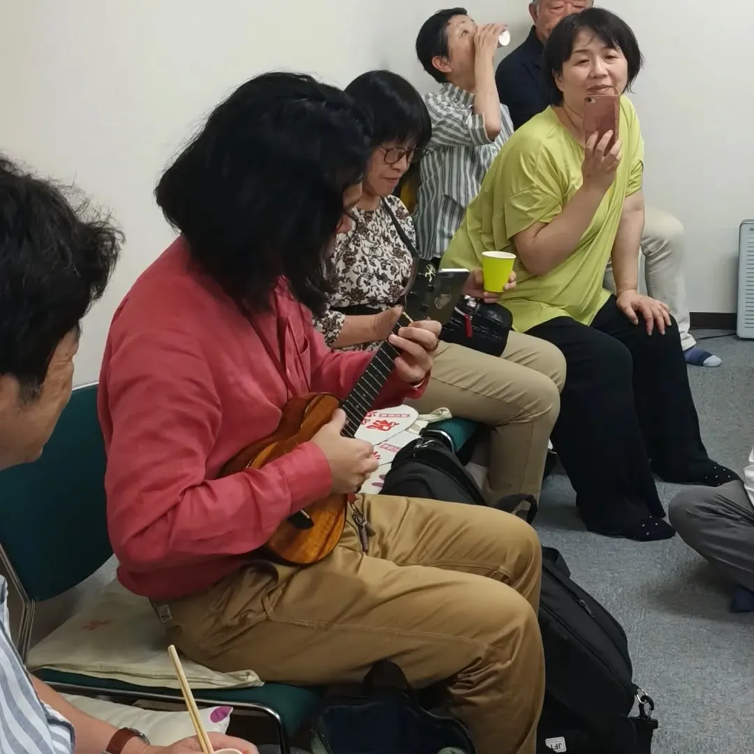気功サロンで開催された神宮花火を観る会で、ウクレレ奏者の高橋重人さんによるウクレレ演奏が行われました。