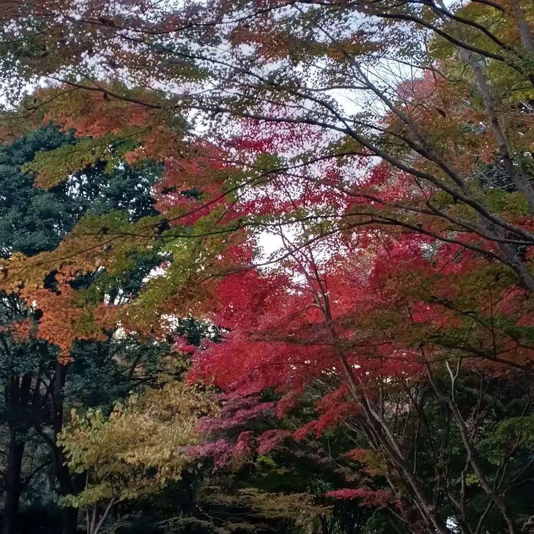 愛犬の散歩でよく行く四季の森公園。秋の深まりを感じます。木の葉の色は赤、黄色、緑のコントラストが鮮やかで、風も少し冷たく、とても気持ちいいです。