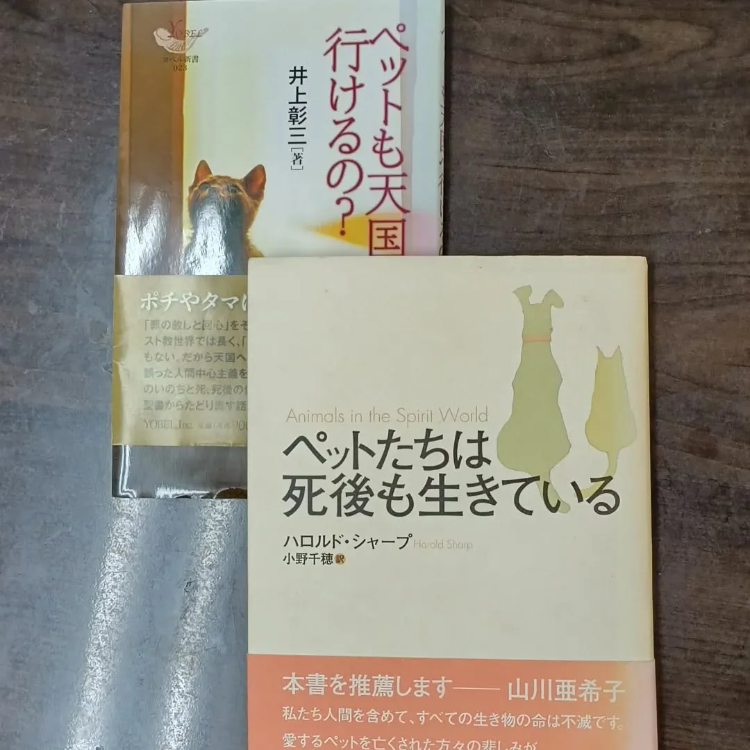 ハロルドシャープ著のペットたちは死後も生きていると、井上彰三著のペットも天国に行けるの?という2冊を彼女にお貸ししようと思います。ペットもあの世で生きていると信じられれば、少しは悲しみを癒すことができるのではないでしょうか。