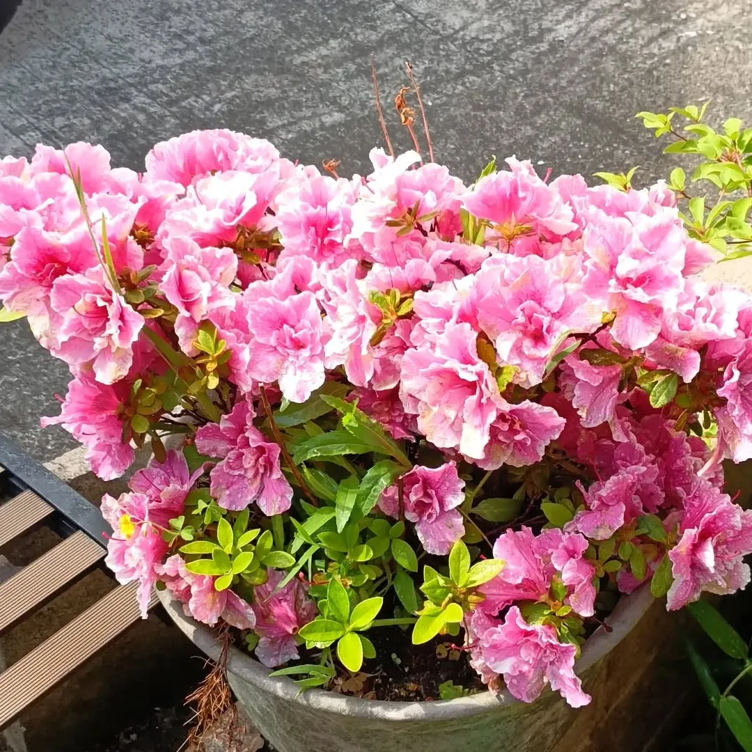 花🌸の名前がちょっと分からず、たぶんアザレアですが、今満開になっています。